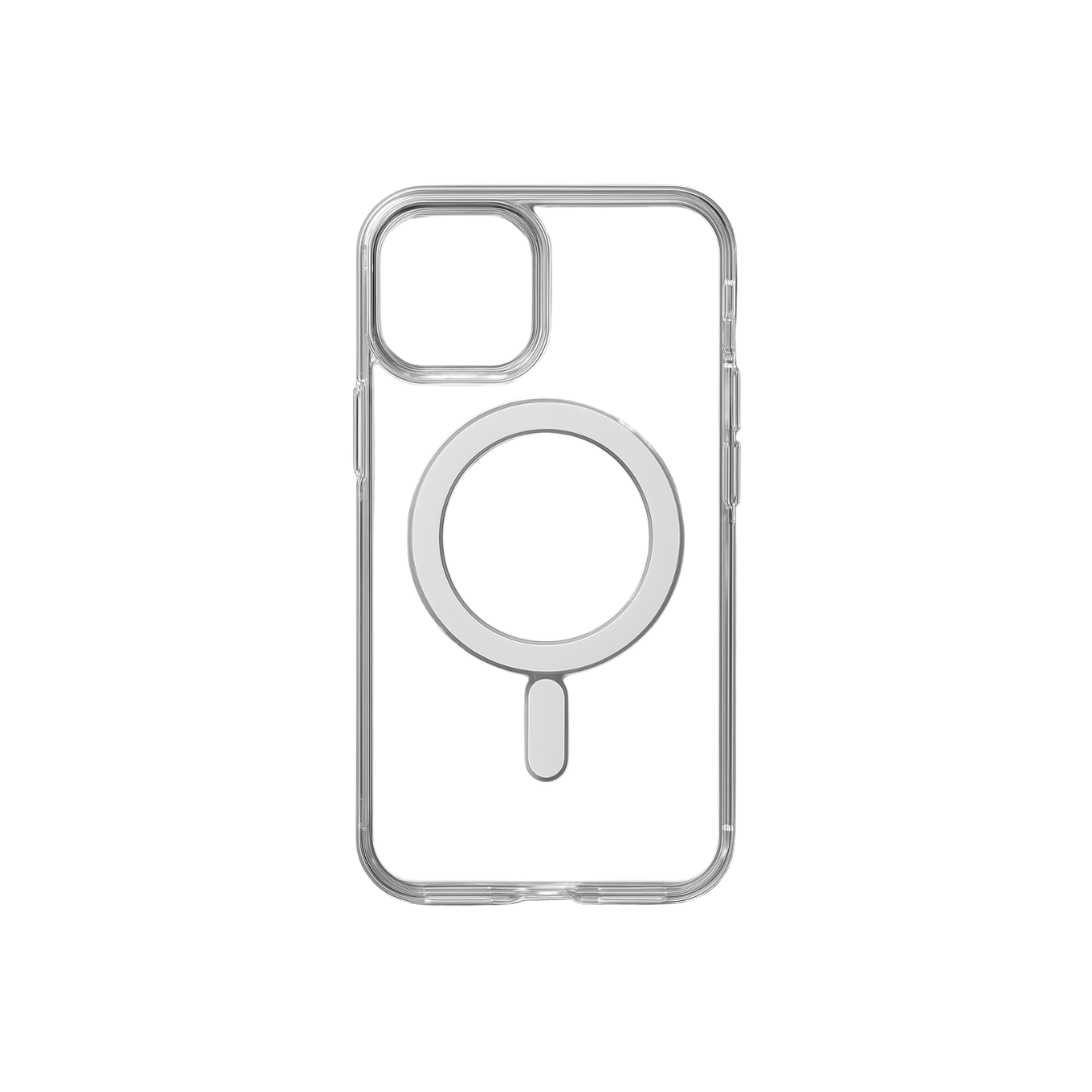 Nuestra funda transparente con MagSafe combina protección y funcionalidad sin ocultar el diseño original de tu iPhone. Fabricada con materiales resistentes y bordes reforzados, protegida contra rayones y caídas del día a día. Gracias a su sistema magnético integrado, es totalmente compatible con cargadores y accesorios MagSafe, permitiéndote cargar y acoplar sin quitar la funda. Fina, elegante y perfectamente ajustada: cuida tu iPhone sin perder estilo ni comodidad.